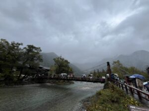 次の日は天気が悪く同じ場所でもまったく違う風景でした。雨のなか上高地を6時間ほど歩きましたが雨も風情がありなかなか良かったです。