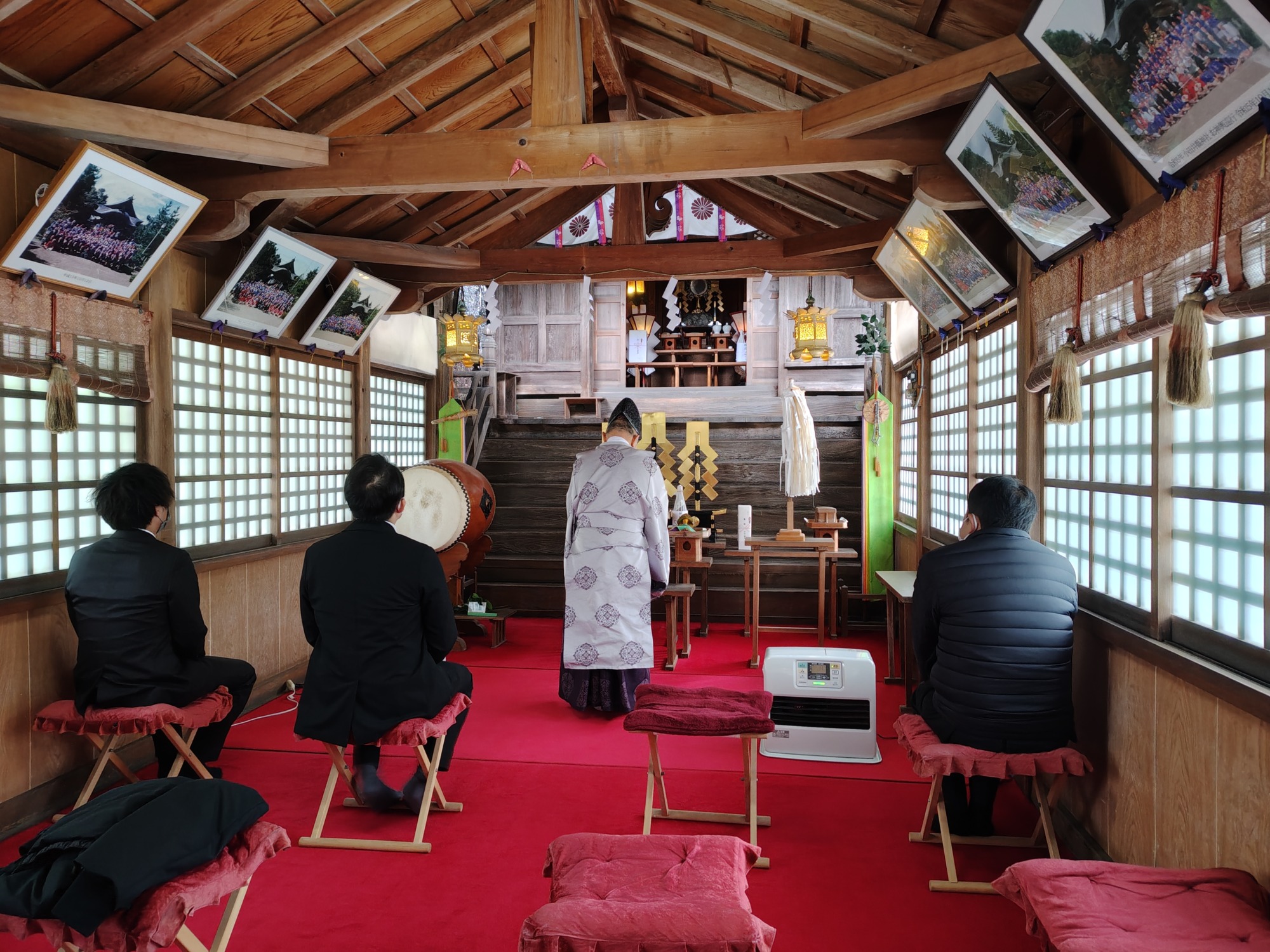 小田井神社神殿にて、神主様に土地の安全と工事の無事を祈願していただきました。