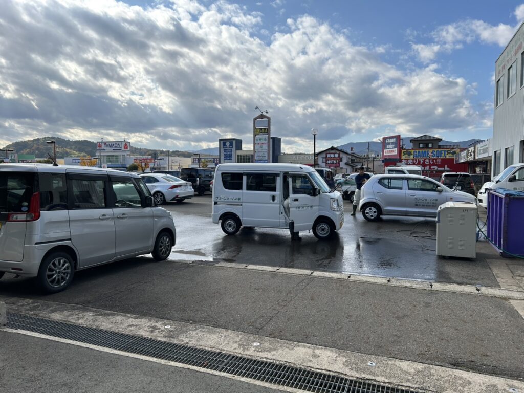 男性陣は外回りへ。倉庫や車庫の整理、車両の洗車、事務所の外窓掃除など、それぞれいつもの担当場所に分かれ、黙々と作業を進めていきます。