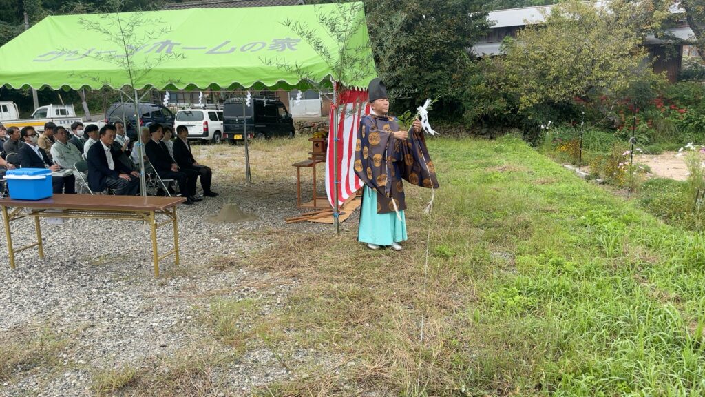 土地の神様にご挨拶をし、工事の安全とご家族の繁栄を祈願する大切な儀式。