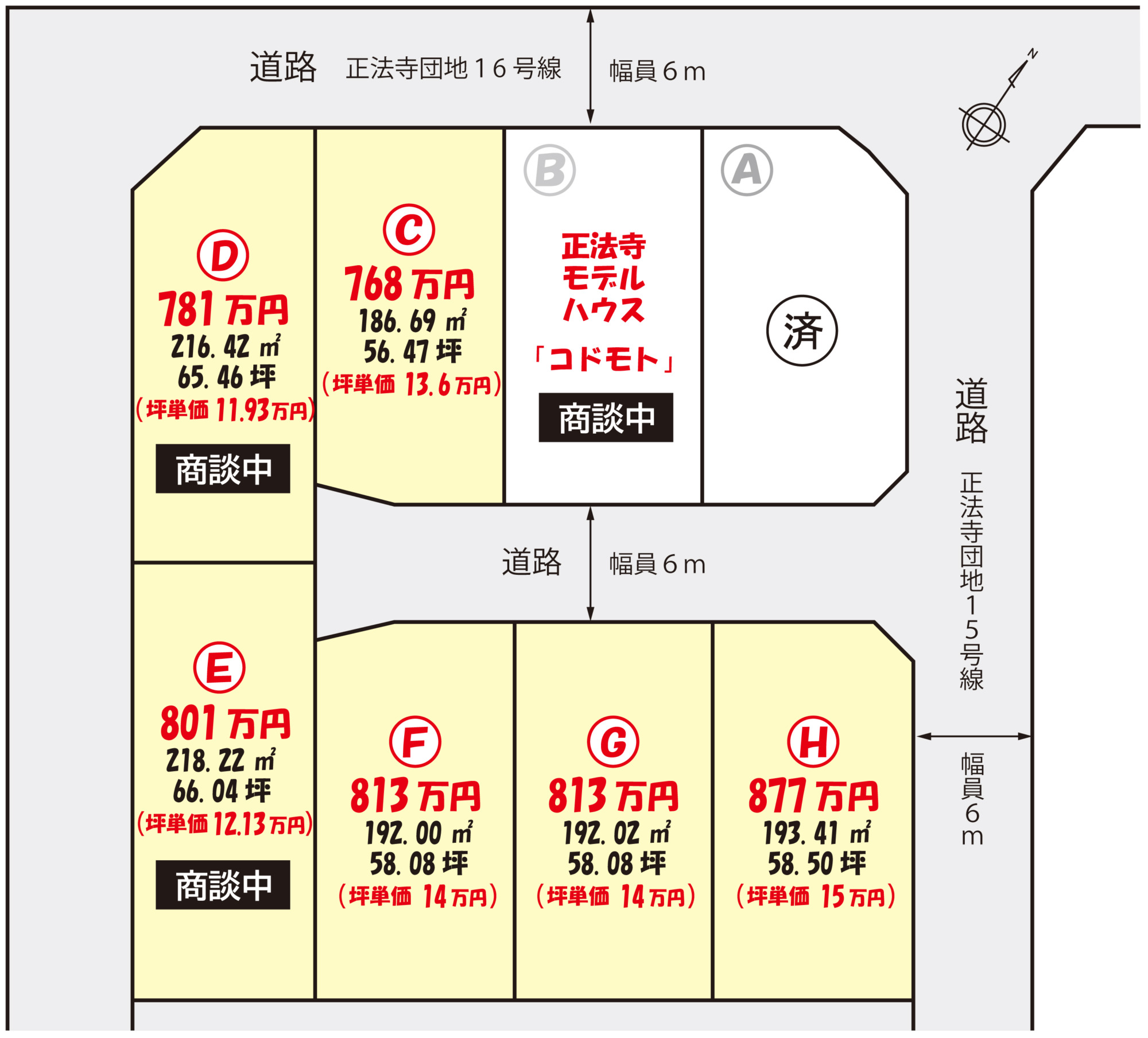 - Ⓒ768万円(坪単価:13.6万円) Ⓓ781万円(坪単価:11.93万円) Ⓔ801万円(坪単価:13万円) Ⓕ813万円(坪単価:14万円) Ⓖ813万円(坪単価:14万円) Ⓗ877万円(坪単価:15万円)