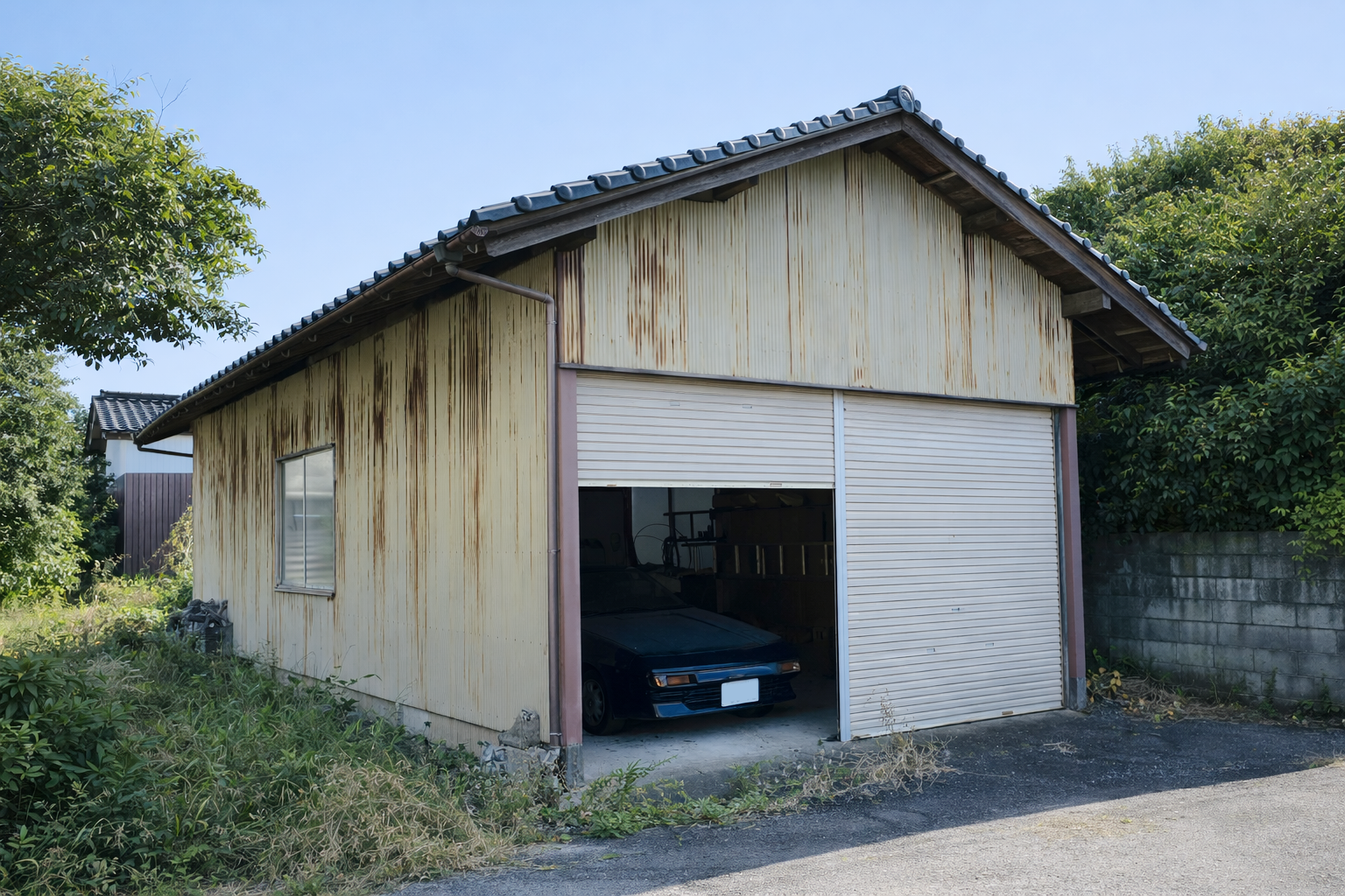 敷地内には車庫もあり、雨や雪の日も安心。蔵や物置スペースも備えており、収納力も十分です。