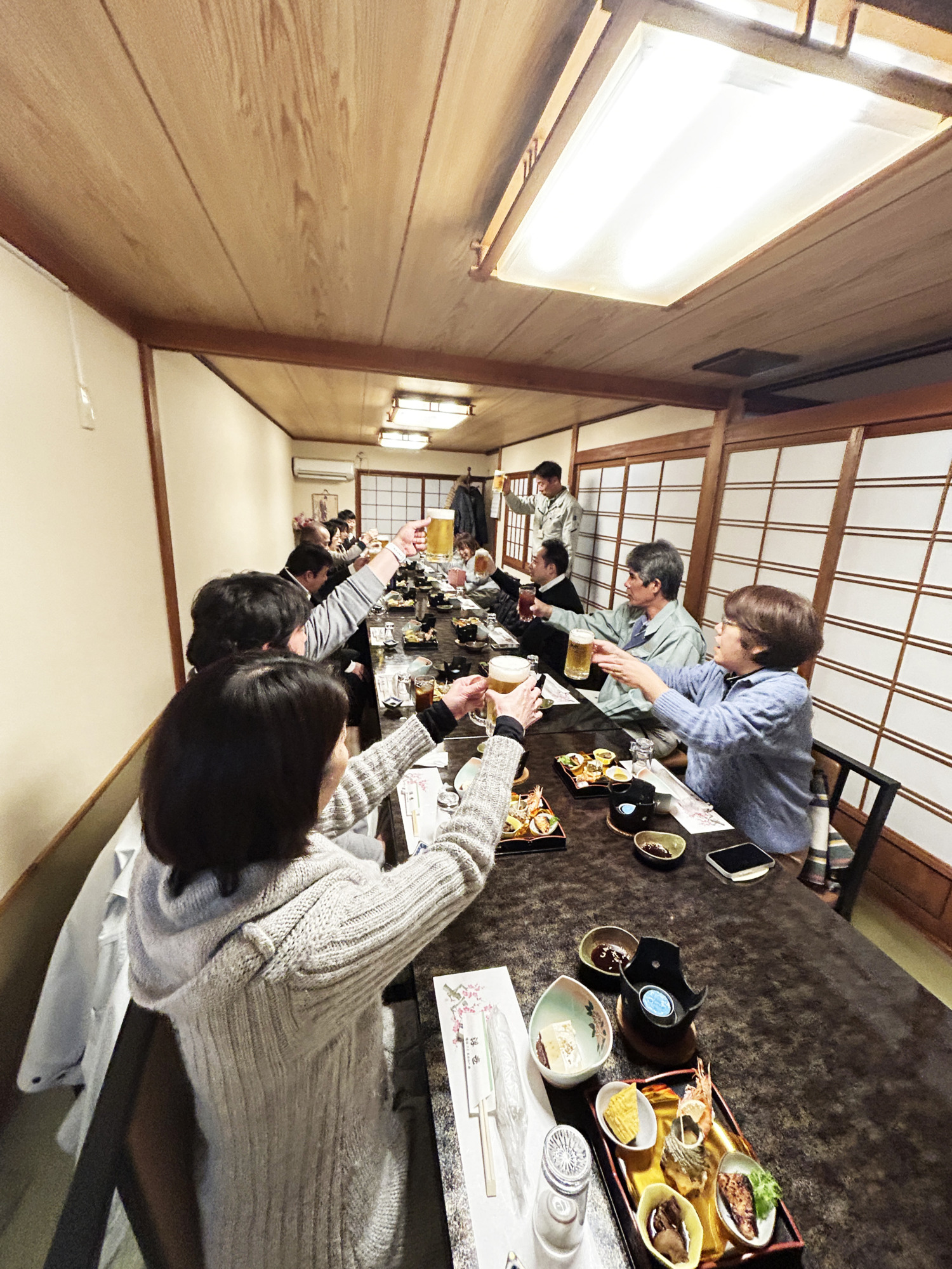 席は毎度おなじみのくじ引きで決定し、工務部長・坂本さんの乾杯の挨拶で会がスタートしました。
