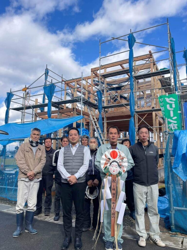 先日、江本分譲住宅の建前を行いました。 朝は少し雨が降り、天候が心…