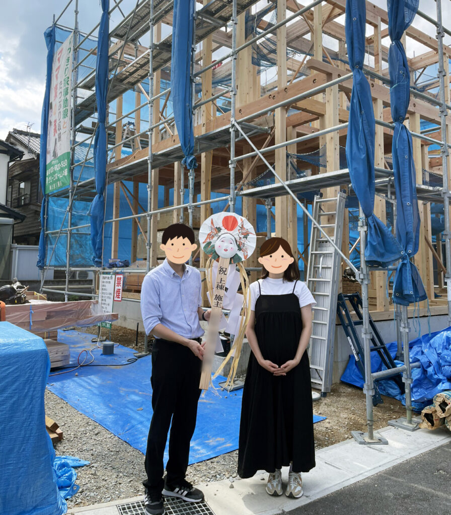 先日、豊岡市にてS様邸の建前を執り行いました。当日は雲ひとつない快晴…