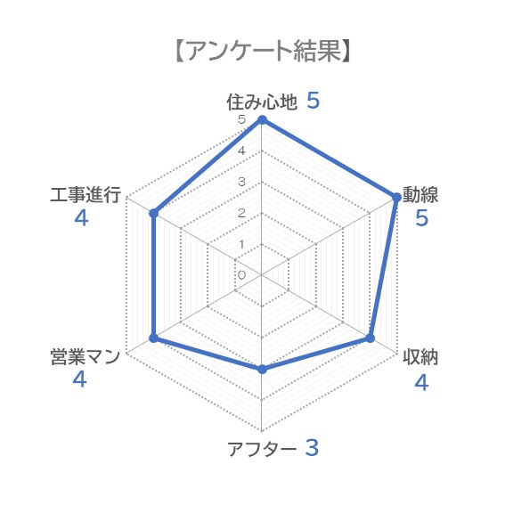 理 由 : おおむね適材適所に収納を設けることができ、満足しています。ただ、ウォークインクロゼットの枕棚の奥行きをもう少し大きくすれば、布団がしまいやすかったと思います。